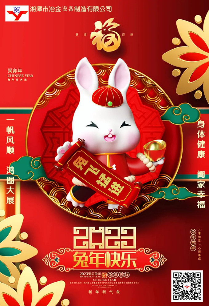 值此2023新年元旦來臨之際,衷心祝愿全體湘冶家人在往后的日子里,在健康快樂中建功立業(yè),與公司一起度過激情燃燒的歲月,一道走向成功!祝所有朋友及家人們:新年快樂!萬事勝意!祝所有朋友及家人們:身體健康、工作順利、事業(yè)進步、闔家幸福!